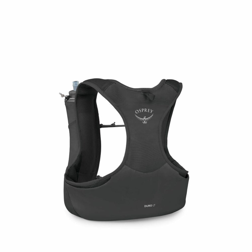 Built for fast, fun runs, Osprey's Duro LT Run Hydration Vest features included hydration, efficient pocketing and a stable, bounce-free men's fit. Light, soft and packable, the Duro LT features 360° stretch structured mesh fabric that stays put while you put in the miles and two Hydraulics™ 500 mL Soft Flasks that keep hydration and calories handy. Two front stretch pockets hold food and supplements.
